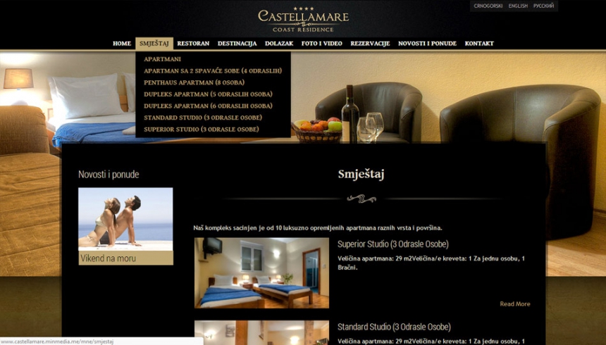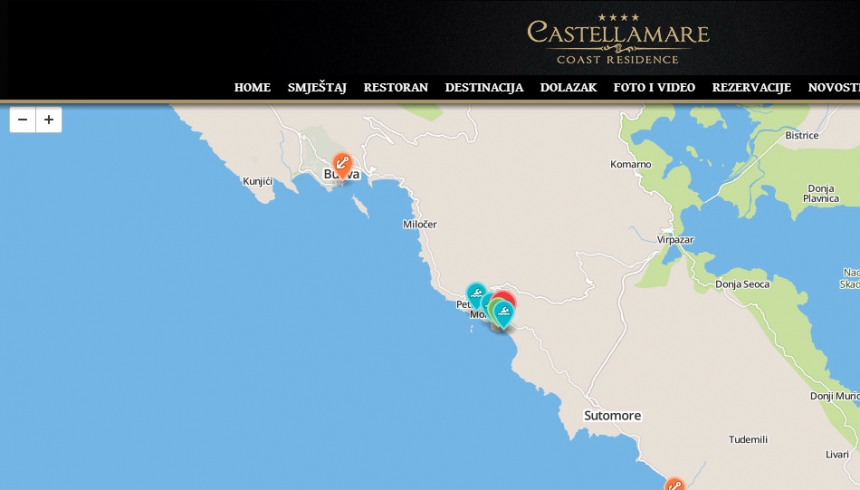 Kompleks “Castellamare” nalazi se na oko 90 m od plaže, na njenom samom desnom kraju, izdignuta pri brdu, što lokaciju čini jednom od najljepših u zalivu, sa koje se pruža fantastičan pogled. Takodje, kompleks ima izlaz na jos jednu plažu - Lučice, po mnogima jednu od najljepših plaža na crnogorskom primorju, od koje smo udaljeni svega 600 m. Objekat je sačinjen od 10 luksuzno opremljenih apartmana raznih vrsta i površina, restorana i caffe bara.
